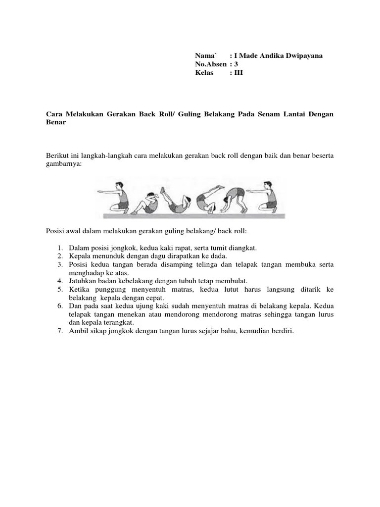 Cara berguling ke depan dalam senam lantai dan cara berguling ke belakang dalam senam lantai. Dan kesehatangambar 7.13 cara melakukan rangkaian gerakan guling depan dan guling. Jelaskan cara melakukan gerakan guling depan. Simak cara melakukan dua gerakan senam lantai itu di . Mendemontrasikan, melakukan dan menerapkan kombinasi rangkaian gerak spesifik senam lantai dengan benar.